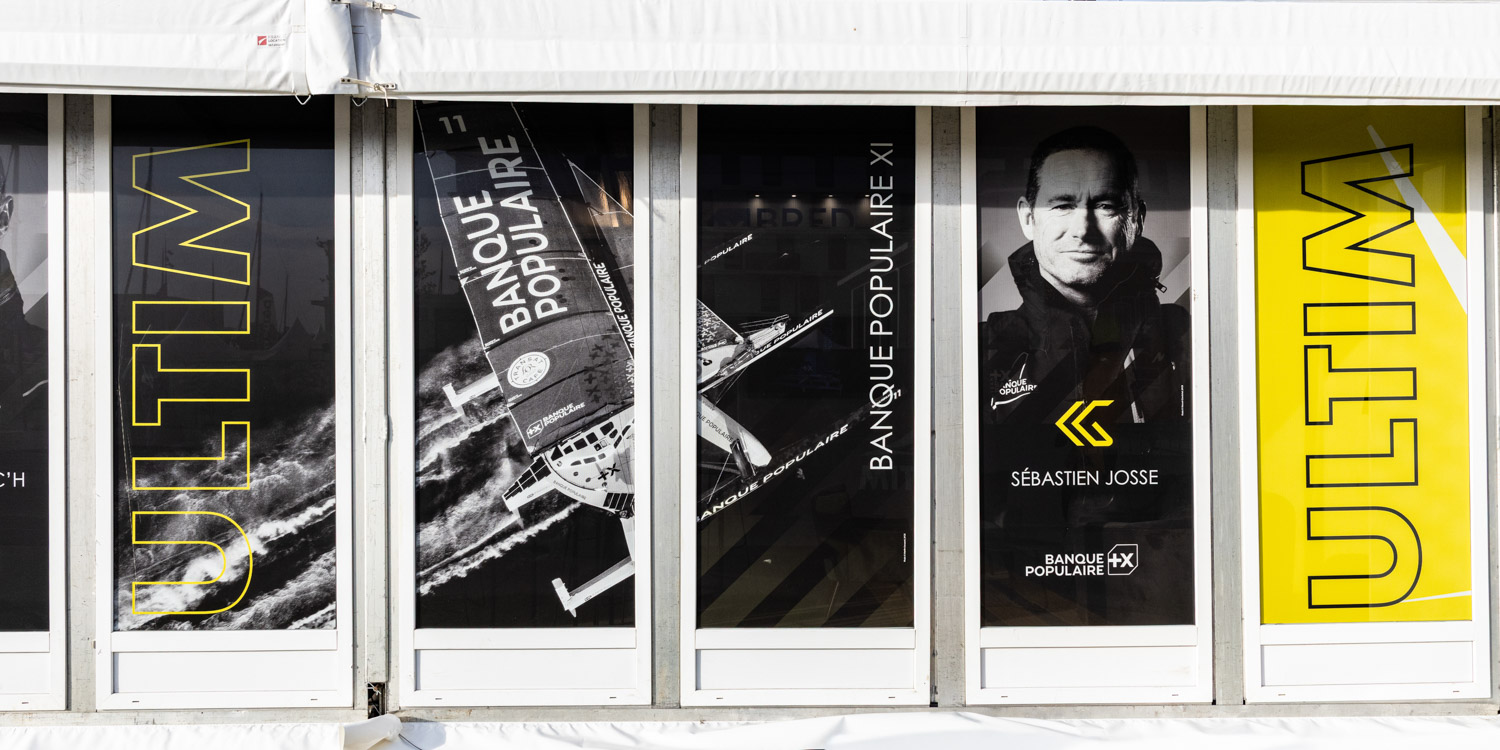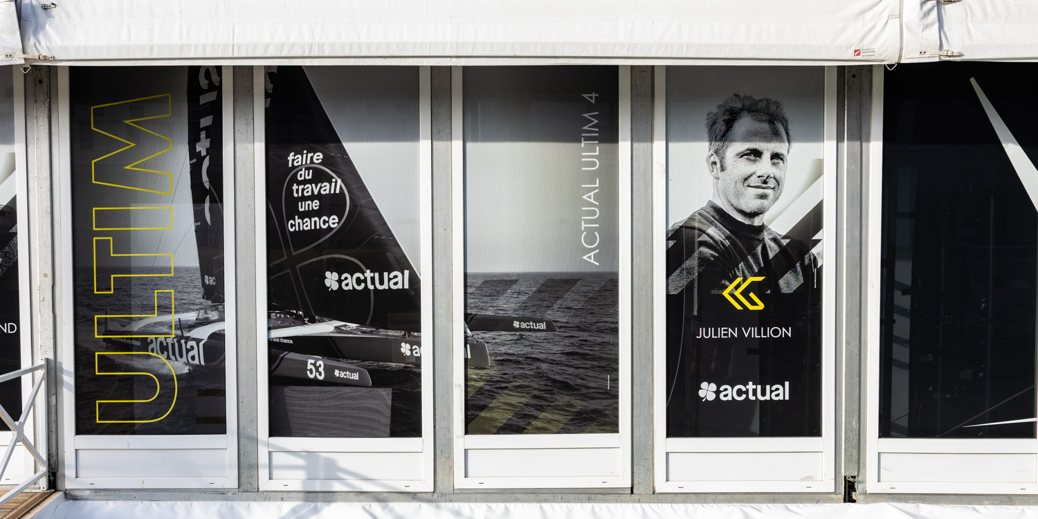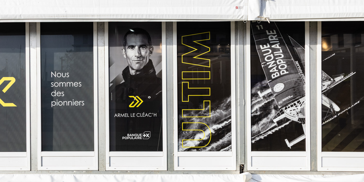Un univers visuel clair, dynamique et compétitif, où les lignes obliques et les flèches traduisent la vitesse et le mouvement qui font vibrer la course au large.