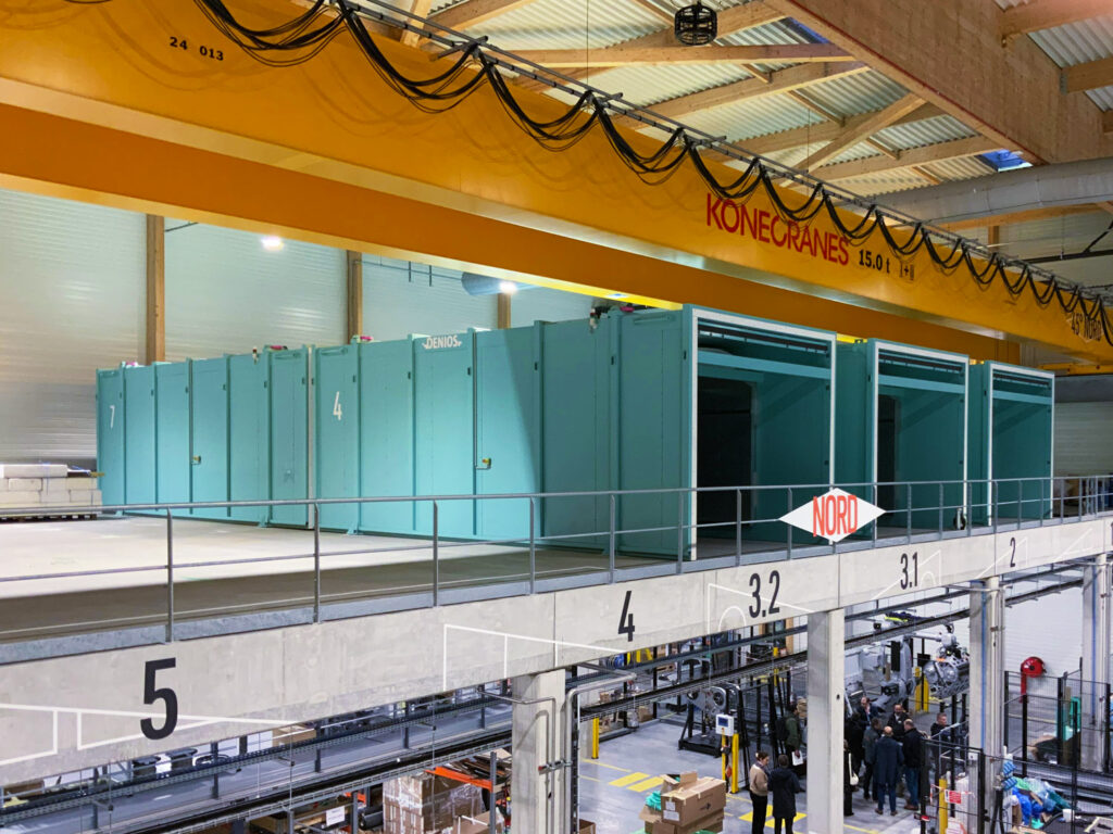 Créer une scénographie et une signalétique capables de dialoguer avec les échelles du lieu : les bureaux d’un côté, et de l’autre ce hangar spectaculaire où prennent forme ces pièces composites hors normes.